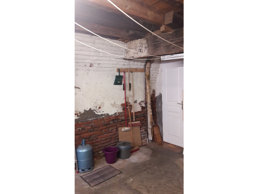 Charmante maison de village à étage, des années 1900, très lumineuse, située à proximité des bords de garonne, dans un environnement très calme, d'env. 98,30 m² habitable, comprenant au rez-de-chaussée une entrée ouverte sur une cuisine, un séjour d'env. 20 m², un garage constitué de murs en briques et galets avec évier, WC et lave-mains d'env. 20 m²; à l'étage, 3 spacieuses chambres (env. 12 + 17 + 20 m²) avec parquet dont une avec placard intégré et cheminée, une salle de bains avec baignoire, vasque, bidet et WC.